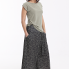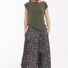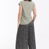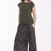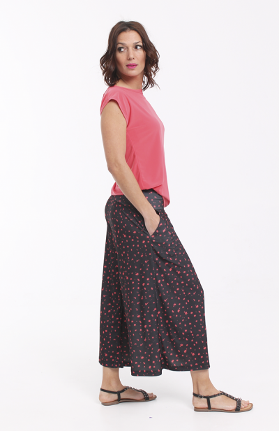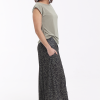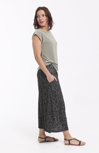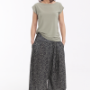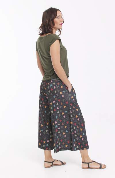 Pantalón de largo midi y pata de elefante con bolsillos oblicuos en el delantero.