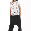 Están confeccionados con tejido de punto con mucha caída, lo que hace que, a pesar de ser un pantalón anchito, estilice la figura.