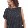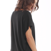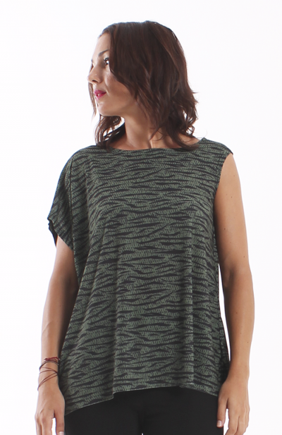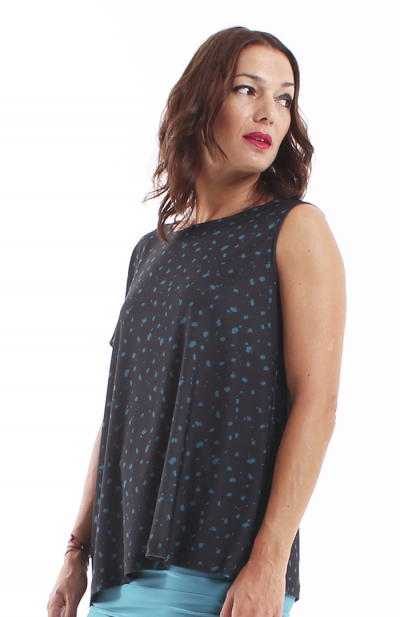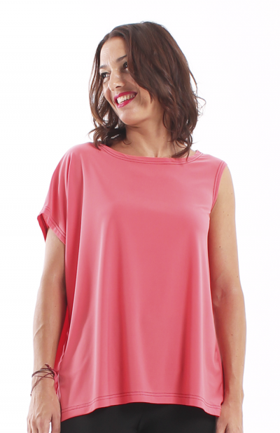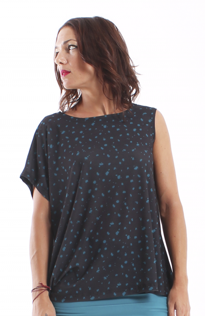 Es un top asimétrico, tiene una manga caída y la otra sin manga.