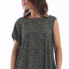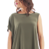 Es tipo oversize con escote redondo y holgado confeccionado con tejido de punto con mucha caída.
