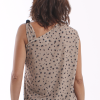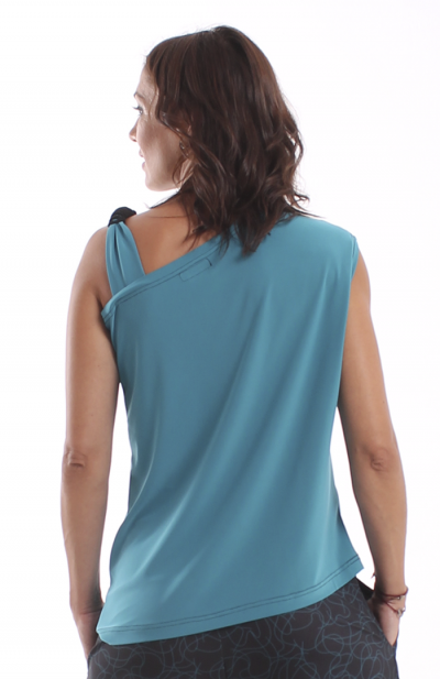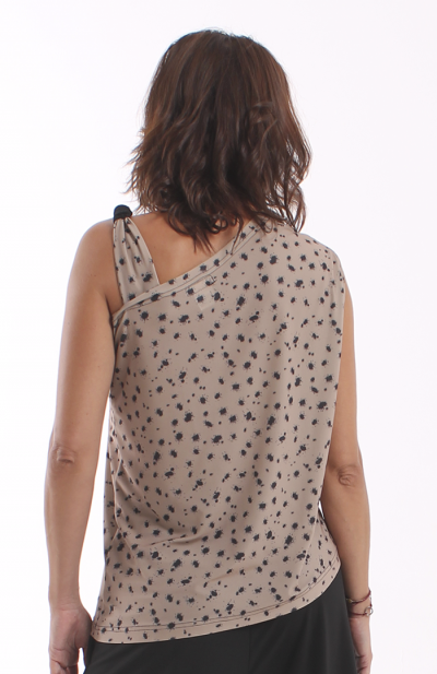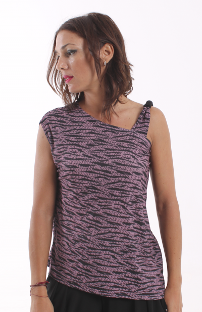 En uno de sus lados el top no tiene manga, y el otro lado es de tirante con un detalle de cuerda anudado que le da un toque muy original.